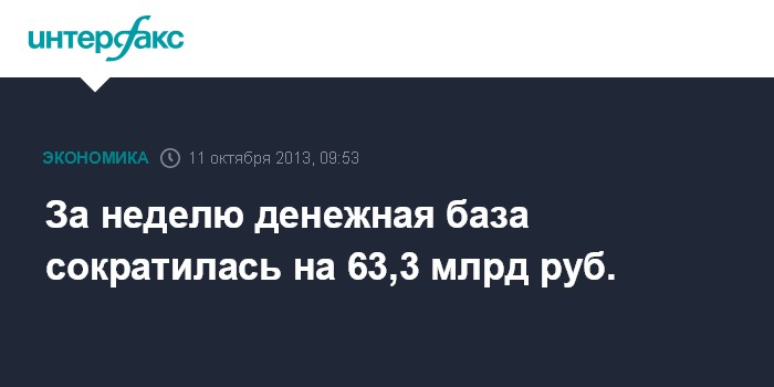 За неделю денежная база сократилась на 63,3 млрд руб.