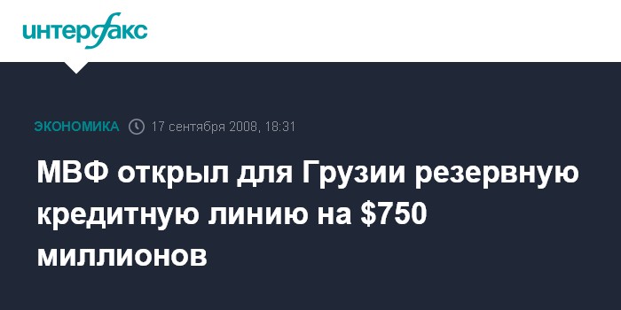 По словам представителя МВФ, кредитная линия "призвана поддержать экономическую политику правительства Грузии и способствовать смягчению отрицательных экономических и финансовых последствий августовских событий". "Согласно условиям, $250 млн Грузия может получить сразу, а остальные $500 млн будут предоставлены шестью траншами", - сказал собеседник агентства.