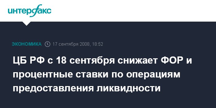 ЦБ РФ с 18 сентября снижает ФОР и процентные ставки по операциям предоставления ликвидности