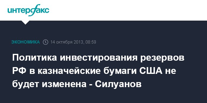 Политика инвестирования резервов РФ в казначейские бумаги США не будет изменена - Силуанов