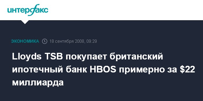 Lloyds TSB покупает британский ипотечный банк HBOS примерно за $22 миллиарда