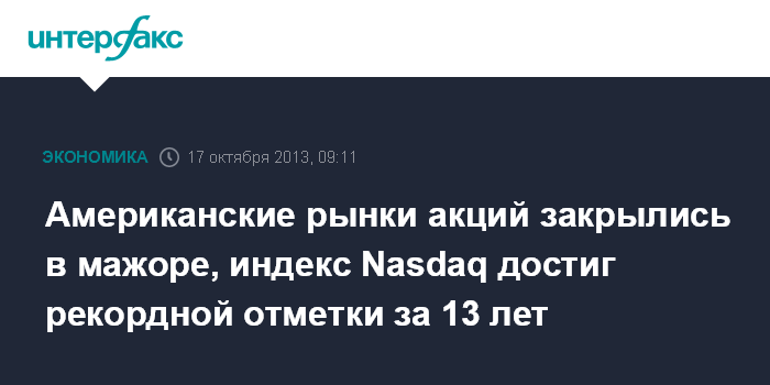 Американские рынки акций закрылись в мажоре, индекс Nasdaq достиг рекордной отметки за 13 лет