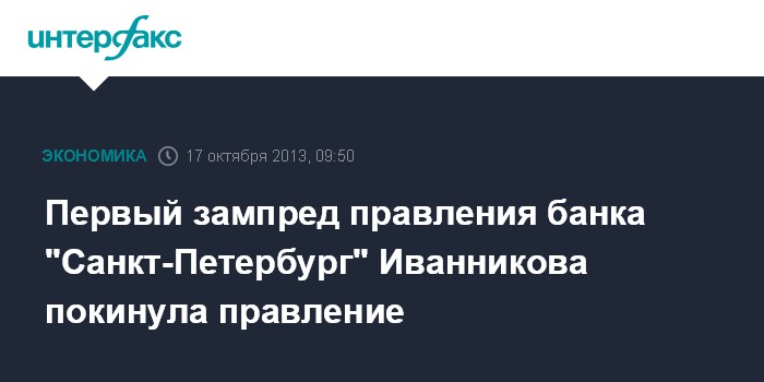 Первый зампред правления банка "Санкт-Петербург" Иванникова покинула правление