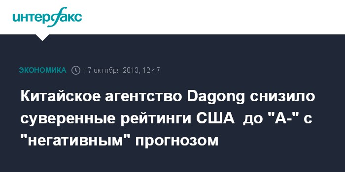 Китайское агентство Dagong снизило суверенные рейтинги США до "A-" с "негативным" прогнозом