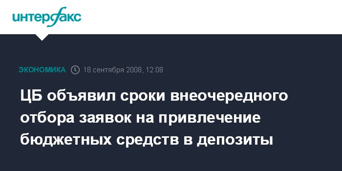ЦБ объявил сроки внеочередного отбора заявок на привлечение бюджетных средств в депозиты
