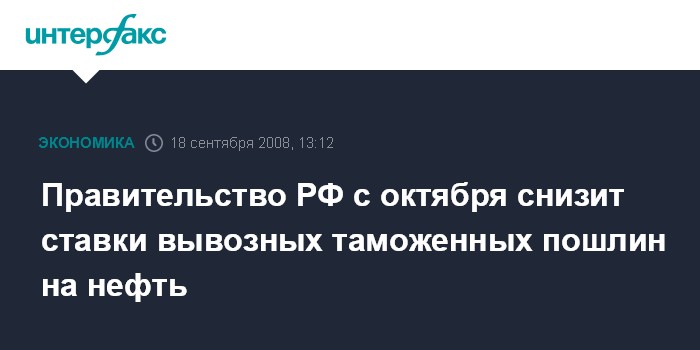 Правительство РФ с октября снизит ставки вывозных таможенных пошлин на нефть