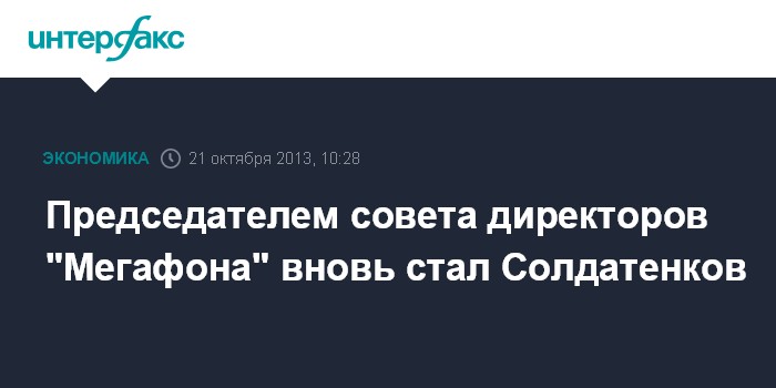 Москва. 21 октября. INTERFAX.RU- Председателем совета директоров ОАО "Мегафон" вновь утвержден экс-гендиректор "Мегафона" Сергей Солдатенков, возглавляющий совет с июня прошлого года.