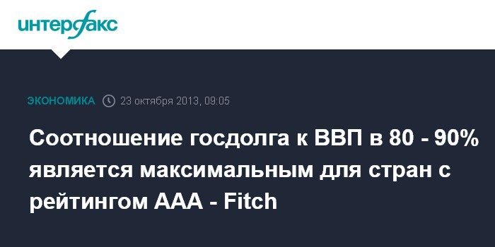 Соотношение госдолга к ВВП в 80 - 90% является максимальным для стран с рейтингом AAA - Fitch