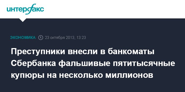 Преступники внесли в банкоматы Сбербанка фальшивые пятитысячные купюры на несколько миллионов