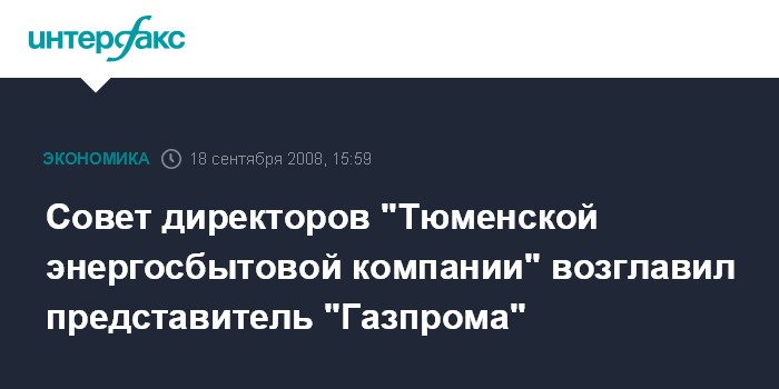 Совет директоров "Тюменской энергосбытовой компании" возглавил представитель "Газпрома"