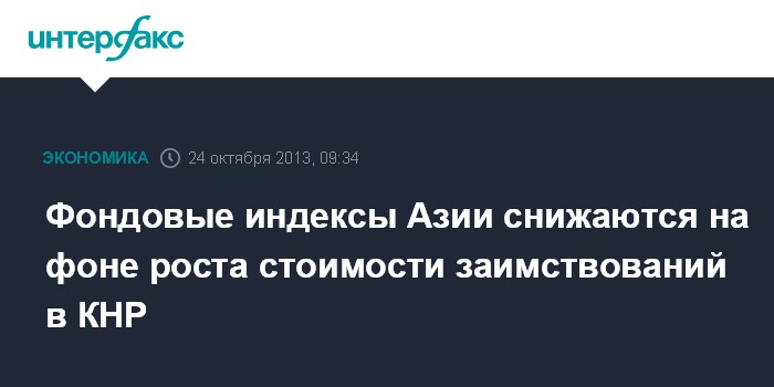 Фондовые индексы Азии снижаются на фоне роста стоимости заимствований в КНР