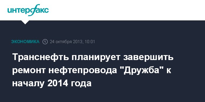 Комсомольск-на-Амуре. 24 октября. ИНТЕРФАКС-АНИ - "Транснефть" планирует в конце 2013-начале 2014 г. завершить ремонт на нефтепроводе "Дружба", сообщил журналистам глава компании Николай Токарев.