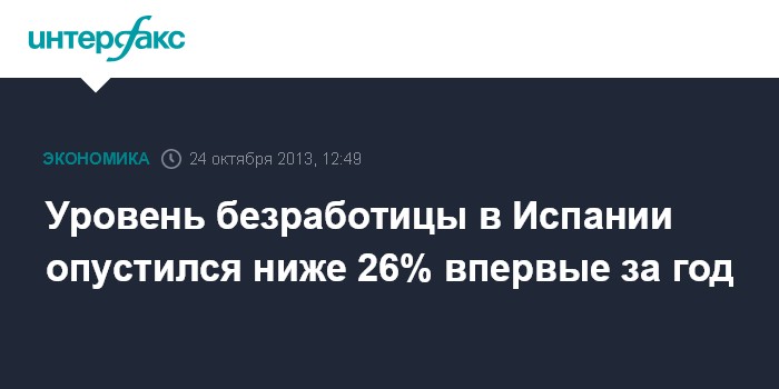 Уровень безработицы в Испании опустился ниже 26% впервые за год.