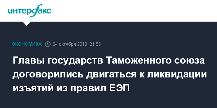 Минск. 24 октября. INTERFAX.RU - Главы государств Таможенного союза договорились двигаться к ликвидации изъятий из правил Таможенного союза и Единого экономического пространства, заявил президент РФ Владимир Путин.