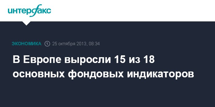 В Европе выросли 15 из 18 основных фондовых индикаторов