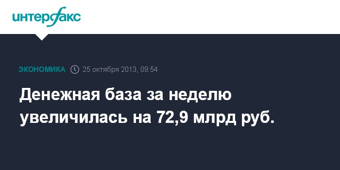 Денежная база за неделю увеличилась на 72,9 млрд руб.