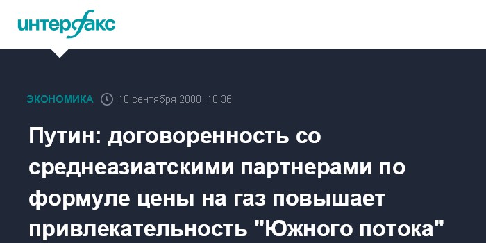 Путин: договоренность со среднеазиатскими партнерами по формуле цены на газ повышает привлекательность "Южного потока"