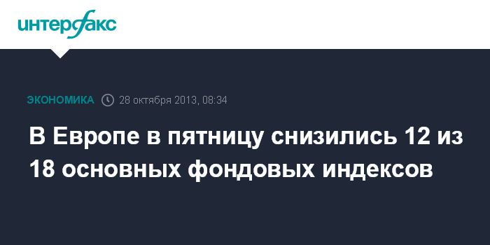 В Европе в пятницу снизились 12 из 18 основных фондовых индексов