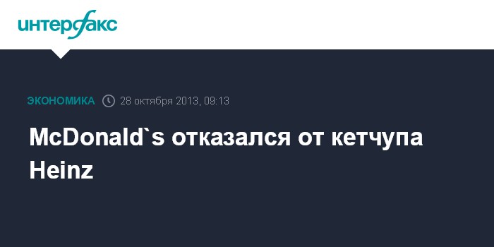 Москва. 28 октября. INTERFAX.RU - Американская сеть ресторанов быстрого питания McDonald`s отказывается от кетчупа компании H.J. Heinz Co., который закупала в течение последних 40 лет.