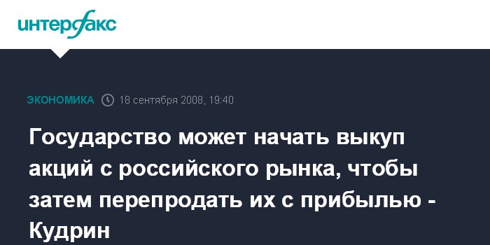 Москва. 19 сентября. ИНТЕРФАКС - Вице-премьер РФ Алексей Кудрин заявил о намерении государства приступить к выкупу части акций предприятий с государственной и негосударственной формой собственности.