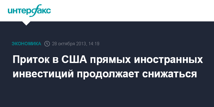 Приток в США прямых иностранных инвестиций продолжает снижаться