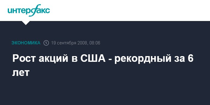 Москва. 19 сентября. INTERFAX.RU - Акции в США выросли в четверг на рекордную за последние 6 лет величину на волне оптимизма, связанного с планами властей США по оздоровлению финансовой системы.