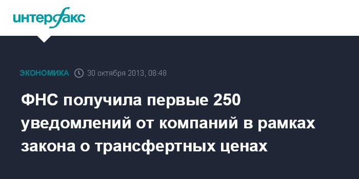 ФНС получила первые 250 уведомлений от компаний в рамках закона о трансфертных ценах