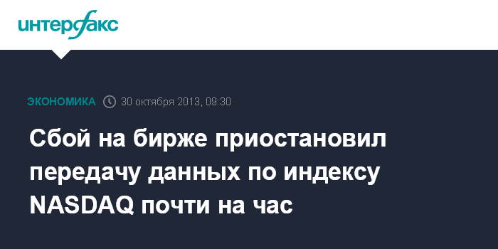 Сбой на бирже приостановил передачу данных по индексу NASDAQ почти на час