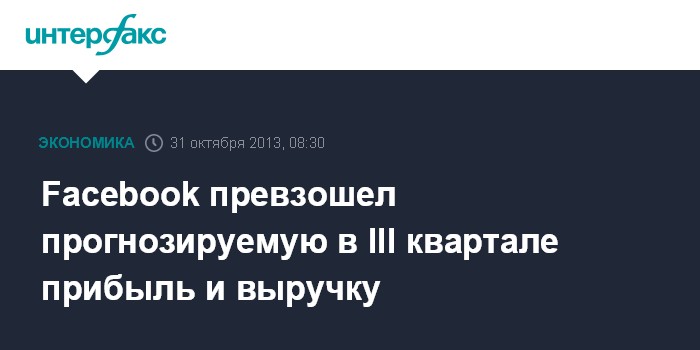Сан-Франциско. 31 октября. INTERFAX.RU - Американская компания Facebook Inc., владелец крупнейшей в мире социальной сети, завершила третий квартал с финансовыми показателями, которые оказались лучше средних прогнозов рынка.