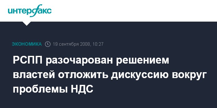 РСПП разочарован решением властей отложить дискуссию вокруг проблемы НДС