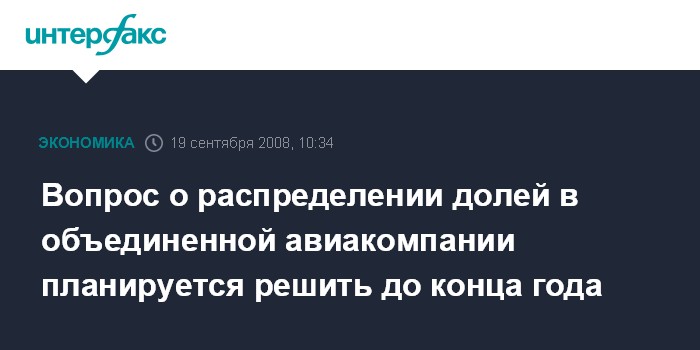 Вопрос о распределении долей в объединенной авиакомпании планируется решить до конца года