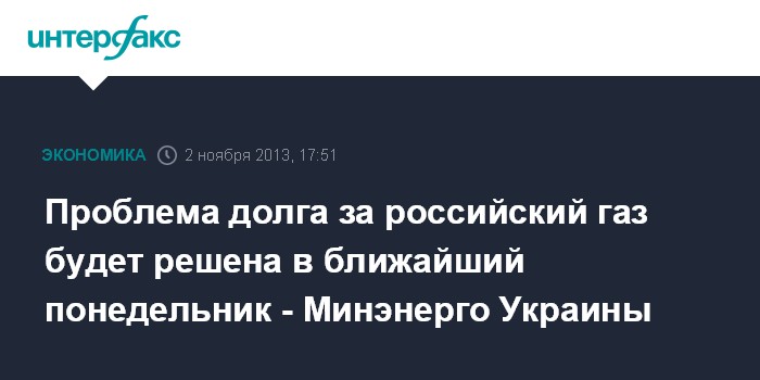 Проблема долга за российский газ будет решена в ближайший понедельник - Минэнерго Украины