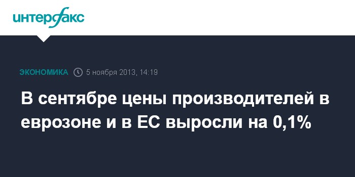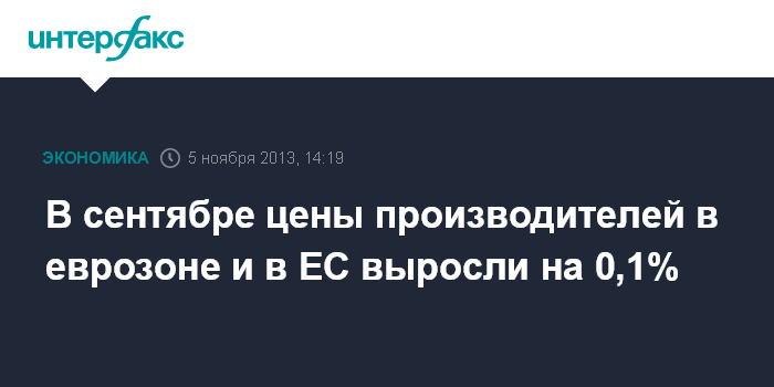 5 ноября. FINMARKET.RU - В сентябре 2013 года цены производителей в еврозоне (индекс PPI) выросли на 0,1% по отношению к предыдущему месяцу, когда они оставались стабильными, свидетельствуют данные Евростата. В годовом выражении цены в сентябре снизились на 0,9% после снижения на 0,8% в августе.
