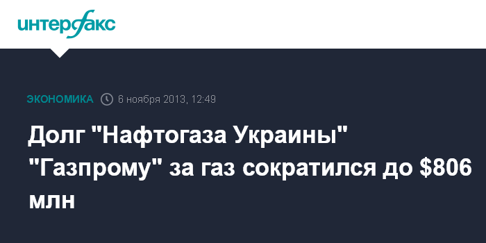 Долг "Нафтогаза Украины" "Газпрому" за газ сократился до $806 млн