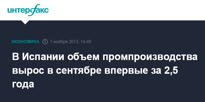 7 ноября. FINMARKET.RU - В сентябре объем промышленного производства в Испании вырос на 1,4% по сравнению с тем же месяцем 2012 года, объявил сегодня Национальный статистический институт (INE).