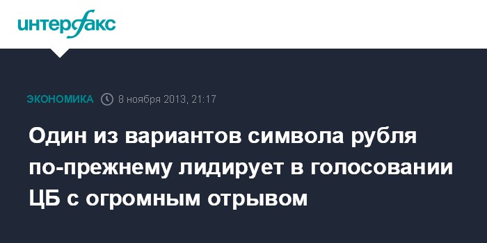 Москва. 8 ноября. INTERFAX.RU - Один из вариантов графического символа российского рубля по итогам первой недели голосования, запущенного на сайте ЦБ РФ, лидирует с огромным отрывом от других кандидатов.