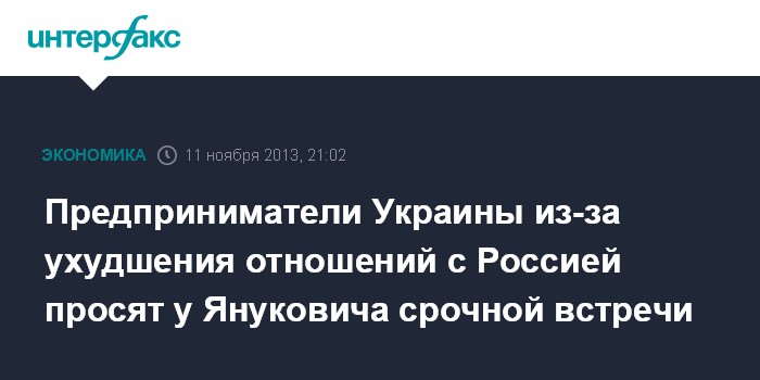Предприниматели Украины из-за ухудшения отношений с Россией просят у Януковича срочной встречи