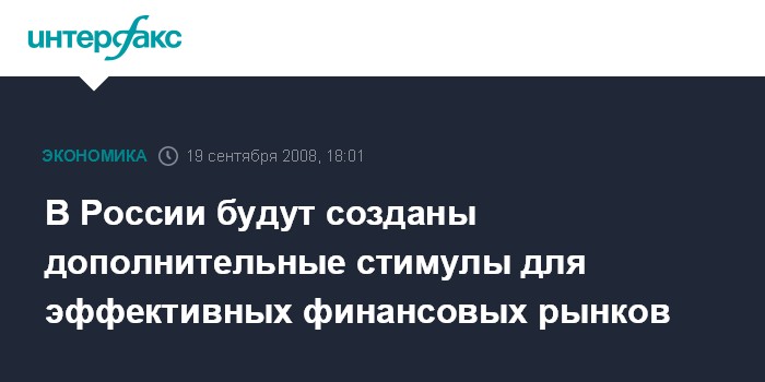 В России будут созданы дополнительные стимулы для эффективных финансовых рынков