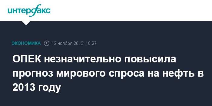 12 ноября. FINMARKET.RU - Организация стран-экспортеров нефти (ОПЕК) повысила на 34 тыс. баррелей в сутки прогноз мирового спроса на нефть в 2013 году - до 89,78 млн б/с.