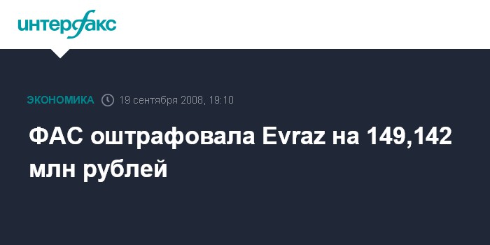 ФАС оштрафовала Evraz на 149,142 млн рублей