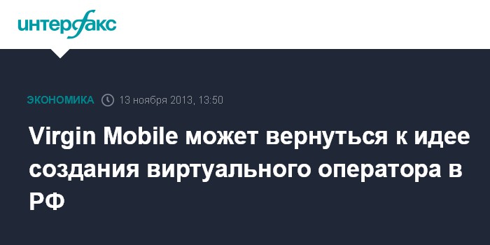Москва. 13 ноября. INTERFAX.RU - Virgin Mobile может вернуться к идее создания виртуального сотового оператора (MVNO) в России, следует из материалов Международной финансовой корпорации.