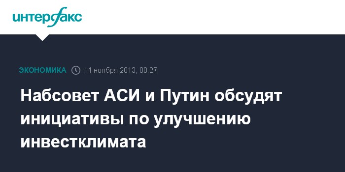 Набсовет АСИ и Путин обсудят инициативы по улучшению инвестклимата