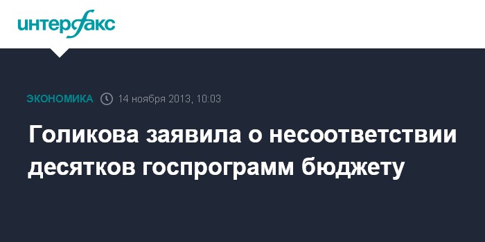 "Речь идет о 40 государственных программах, принятых правительством в течение 2012 - 2013 годов, которые легли в основу проекта бюджета на 2014 - 2016 годы. От развития электроэнергетики и строительства самолетов до внутреннего туризма. К сожалению, сегодня это утвержденные программы, но их параметры не соответствуют проекту бюджета", - сказала Голикова.