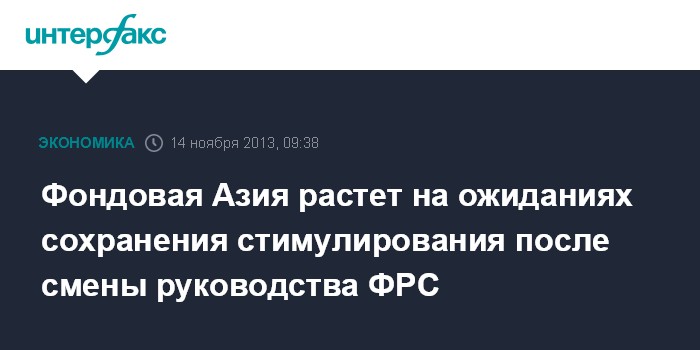 Фондовая Азия растет на ожиданиях сохранения стимулирования после смены руководства ФРС