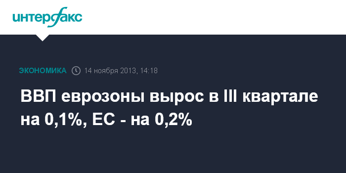 14 ноября. FINMARKET.RU - В III квартале 2013 года объем ВВП 17 государств еврозоны вырос на 0,1% по сравнению с I кварталом, когда был зафиксирован рост на 0,3%, свидетельствуют предварительные данные Статистического управления Евросоюза.