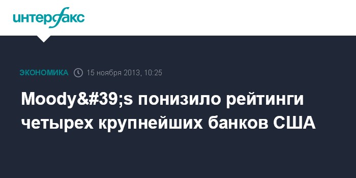 15 ноября. FINMARKET.RU - Международное рейтинговое агентство Moody's понизило рейтинги четырех крупнейших банков США.