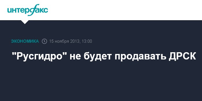 Москва. 15 ноября. INTERFAX.RU - ОАО "Русгидро" не планирует продавать ОАО ДРСК и рассчитывает, что после решения проблемы "последней мили" компания станет прибыльной", сообщил журналистам председатель правления "Русгидро" Евгений Дод.