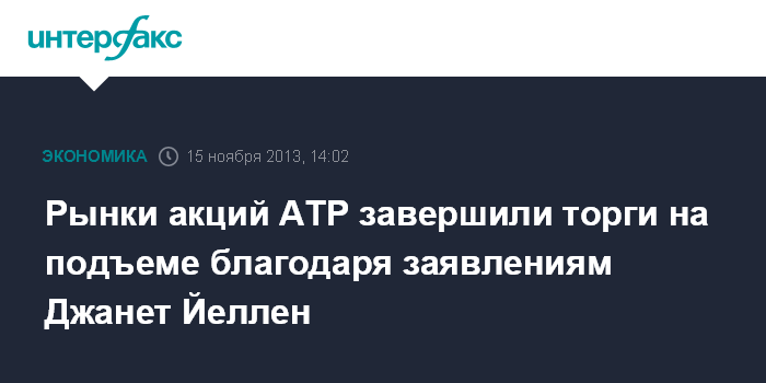 Рынки акций АТР завершили торги на подъеме благодаря заявлениям Джанет Йеллен