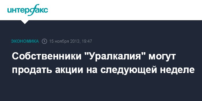 Собственники "Уралкалия" могут продать акции на следующей неделе