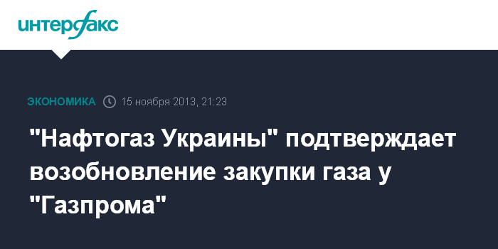 "Нафтогаз Украины" подтверждает возобновление закупки газа у "Газпрома"